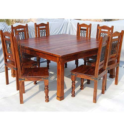 Let Freedom and comfort ring with the Philadelphia 9pc Square Dining Room Table and Chair Set. This traditional furniture set incorporates wrought iron into a classic design which will be the comfort center of any dining room.